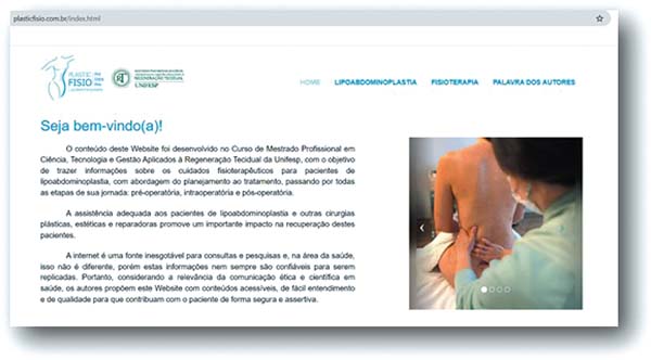 Conclusion We developed the "plasticfisio.com.br" website to promote health education and communication. The website contains reliable information about physical therapy before and after lipoabdominoplasty, and it encourages patient autonomy and interaction with professionals. The project has potential for expansion and can serve as a model for digital health initiatives.