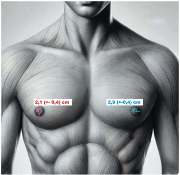 Introduction The nipple-areola complex (NAC) plays a fundamental role in the esthetic and functional harmony of the thoracic region, with direct implications for procedures such as gender-affirming surgeries, postbariatric breast reconstructions, and gynecomastia treatments. Although the literature contains several reports on female parameters, data on male NAC remain scarce, hindering proper surgical planning.
