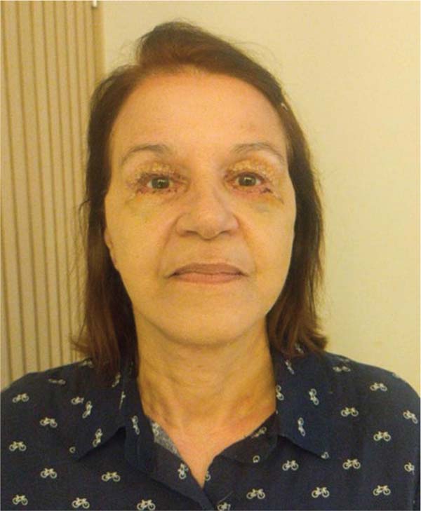 No pós-operatório, quase não se percebeu equimose e o edema foi moderado, conforme as ►Figs. 12 e 13. Não houve caso de hematoma, seroma ou necrose tecidual. Existiu um caso de neuropraxia do ramo marginal do nervo mandibular com resolução total e espontânea em 5 meses.