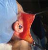 3. Descolamento mínimo da pele, em torno de 3 a 4 cm, com tesoura, ao redor do pavilhão auricular.