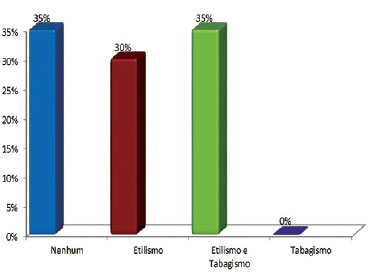 Quanto aos hábitos, foi constatado que grande parcela dos indivíduos estudados fazia uso de álcool em concomitância ou não com tabaco (Figura 2).