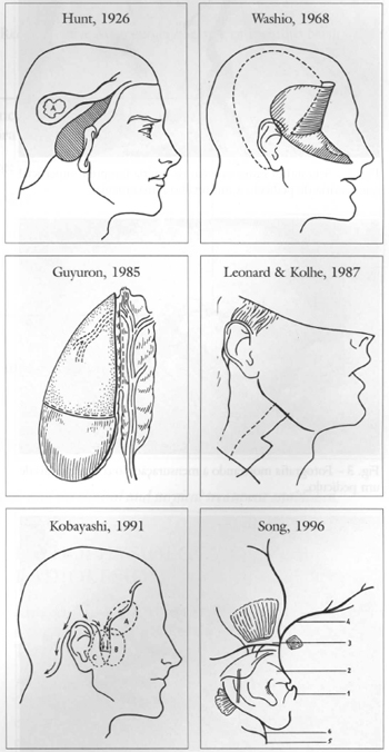 2. Washio H. Further experiences with the retroauricular temporal fiap. Plast Reconstr Surg. 1972; 50:160-2.