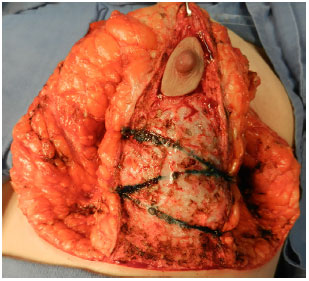 The breast was sutured in two layers (subdermal and intradermal) with Monocryl 4-0 absorbable suture. A suction drain was used for 3-4 days.