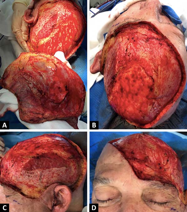 A necessidade de margens amplas gera defeitos extensos do couro cabeludo, criando um desafio para o cirurgião plástico ao considerar o aspecto tridimensional do crânio, a capacidade de expansão limitada do tecido do couro cabeludo e o aspecto cosmético da região portadora de cabelo, bem como a demanda de cobertura suficiente da cavidade craniana no caso de defeitos cranianos concomitantes8.