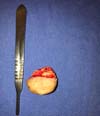 Surgical resection of the upper third of the right ear was performed under local anesthesia (Figures 4 and 5) and the wound edges were sutured. Surgical reconstruction was scheduled for a later date (Figure 6) because of the uncertain nature of the lesion and a high suspicion of malignancy.