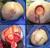 Paciente masculino, adulto, havia sofrido traumatismo cranioencefálico há 7 anos, por agressão a machado. Foi operado quatro vezes em Serviços de Neurocirurgia. Por mais de uma vez, foi realizada cranioplastia com acrílico autopolimerizável, seguida de infecção subsequente e osteomielite frontoparietal, requerendo retirada do implante e novo desbridamento ósseo (Figura 4).
