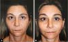 Upper blepharoplasty was always performed after EF to allow the removal of only the real excess skin, thus avoiding cases of difficult upper eyelid occlusion.