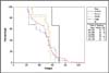 Segundo o estimador de Kaplan-Meier (Figura 7), os pacientes encaminhados pelas especialidades de Dermato -logia e Cirurgia de Cabeça e Pescoço tenderam a completar mais o tratamento do que os encaminhados pela Cirurgia Plástica (p=0,002).