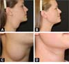 The patient evolved well clinically and with progressive recovery. The drain was removed five days postoperatively. After the procedure, the patient developed paraparesis in the right corner of her mouth. The depressor anguli oris muscle on the right with reduced strength on the contralateral side. Symmetrization was carried out with the application of 2 units at 1 point of botulinum toxin in the contralateral muscle and complemented with motor physiotherapy.