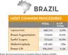 No Brasil as 5 cirurgias mais realizadas foram: 1 - Lipoaspiração, 2 - Aumentos primários da mama; 3 - Blefaroplastia, 4 - Abdominoplastia e 5 - Mastopexia. No total foram mais de um milhão e seiscentos mil procedimentos de cirurgia plástica realizados.