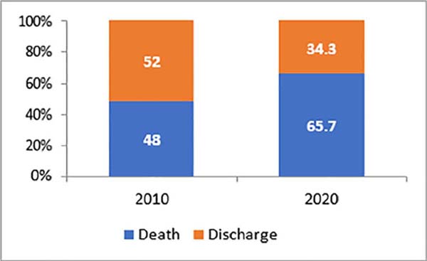 However, during this period there was a reversal in the origin of the patients. In 2010, the majority of hospitalized patients lived in the capital. In 2020, the majority lived in the interior of the state (Figure 1).