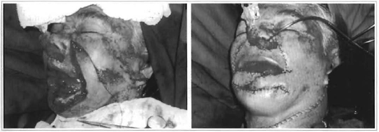 c) os retalhos de língua e do pescoço associados com retalhos de face favorecem o bom resultado estético e funcional.