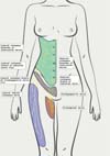 Fig. 2 - Cutaneous sensory nerves of the abdominal wall and groin and innervated areas.