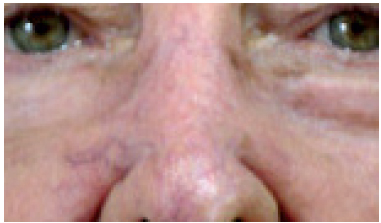 Figura 3 - Ulceração no dorso nasal causada pelo uso prolongado e intermitente do 5-fluoracil tópico.