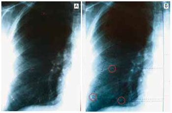A avaliação imaginológica pós-operatória foi realizada por meio de radiografias póstero-anterior do tórax, há 1,80 m de distância fonte-placa, com técnica hiperpenetrada, a fim de visualizar todos os clipes, mesmo os localizados em áreas de maior densidade tecidual. Foram realizados exames de imagem no 1o dia pós-operatório, e com 1, 3, 6 e 12 meses após a cirurgia (Tabela 1).