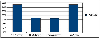 Figura 3 - Intervalo de tempo entre as cirurgias no Grupo II, dentre as pacientes que apresentavam implantes de poliuretano.