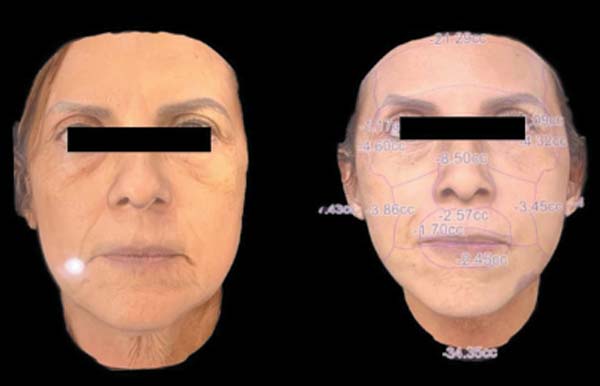 Para a avaliação de rejuvenescimento facial, muitos pontos anatômicos podem ser levados em consideração para inferir sucesso, como a volumização e projeção malar.8 Estudos da área também demonstram que já é possível avaliar com consistência as diferenças de volumização entre o prée pós-operatório com softwares que utilizam estereofotogrametria 3D. E entre as áreas que apresentaram, neste estudo, volumização para a obtenção de certo nível de rejuvenescimento estão, respectivamente, a fronte, a têmpora e a região malar. É importante ressaltar também as áreas que apresentaram balanço negativo no pós-operatório como sulco nasolabial, linha de marionete e região submentoniana.9