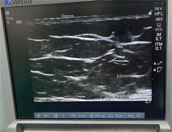 Introdução A lipoenxertia glútea é amplamente utilizada para a remodelação corporal, impulsionada por padrões estéticos e pelas redes sociais. No entanto, complicações como embolia gordurosa têm sido relatadas, especialmente nos Estados Unidos. Para aumentar a segurança do procedimento, desenvolveu-se a técnica guiada por ultrassonografia, que permite a deposição precisa da gordura na região subcutânea profunda sem alcançar a camada muscular, o que reduz os riscos.